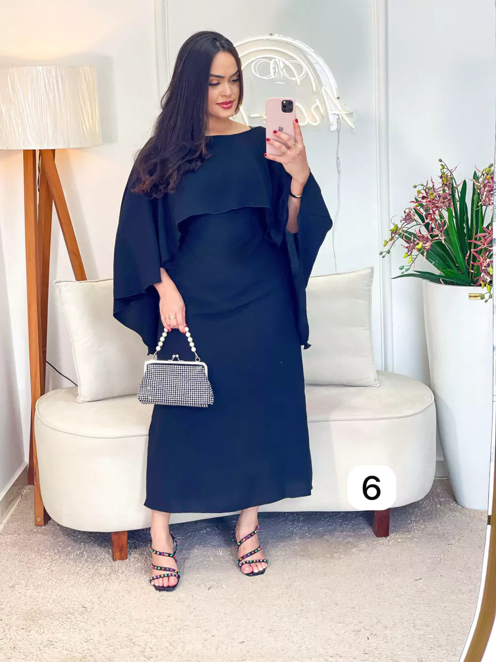 Um charme em cada detalhe! O Vestido Janete é composto por duas peças que formam um visual deslumbrante: o vestido tomara que caia com caimento impecável em tecido duna e uma capa fluida que traz sofisticação e movimento ao look. A combinação perfeita entre sensualidade e elegância para ocasiões que pedem presença marcante e estilo único.